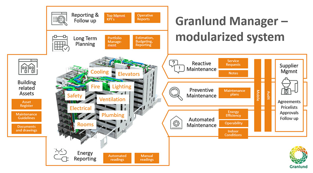 The pioneering Granlund Manager software has a 30-year history of transforming property management and facility maintenance processes. A state-of-the-art technology improving the energy efficiency and sustainability of properties, Granlund Manager is currently in use in over 60,000 properties worldwide.